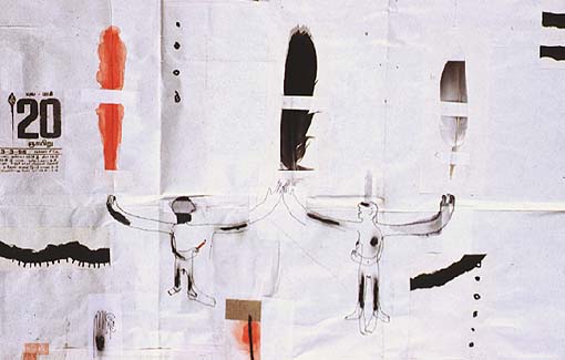 (1996) 550x650mm/watercolor,pen,feathers,a seet of block calender,papers