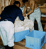 麹箱の底板をはずし、底から冷気を吸い込むようにした状態で、室内を冷却し麹を冷やします。麹菌は放っておくとどんどん繁殖しますので、温度を下げることによって菌の繁殖を押さえます。