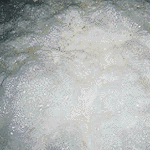 醪3日目 石鹸水のような薄い膜の泡が吹きだていました。これをミズ泡というそうです。酵母はまだ増殖の初期の段階で、炭酸ガスはあまり発生していません。