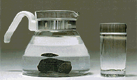 | おいしいミネラルウオーターができる 水道水を入れた容器に備長炭を入れておくと、ミネラルウォーターができます。これも目に見えない小さな空洞がカルキ臭などの悪臭を取り除いてくれるからです。PH9のアルカリ性である備長炭のため、水は身体にいい弱アルカリにもなります。 |