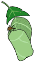 葉の先端から折り曲げ何回か巻いた後、産卵する |