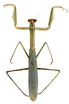 田のへりや草原などの明るいところの、草の間にすむ。三角形の頭と胸のつなぎめがくびれていて、頭は自由にまわすことができる。目は左右の複眼と、そのあいだに単眼が3つある。胸は細長くて、首のようにみえる。前足はほかの虫をつかまえられるように、おりたたみ式ののこぎりのように変形する。