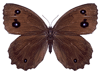 蛇の目の紋が羽にあるところから名づけられたチョウ。メスはオスよりも大きく、ジャノメの紋も大きくはっきりしている。この目玉もようは、鳥よけの風船があるように、天敵の鳥から身を守るために役立つと考えられている。つまりメスのほうがオスより鳥におそわれにくく、子孫を残すのにつごうがよくなるわけだ。