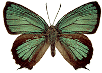 オスの羽の表面は金緑の美しいメタリックカラー。羽の輝きは、見る角度によって色が変化する。これはCD(コンパクト・ディスク)が光の干渉によって虹色に輝くのと同じ現象なのだ。また、羽の裏側には白いM字型のもようがある。実物にであったら、ぜひたしかめてみよう。